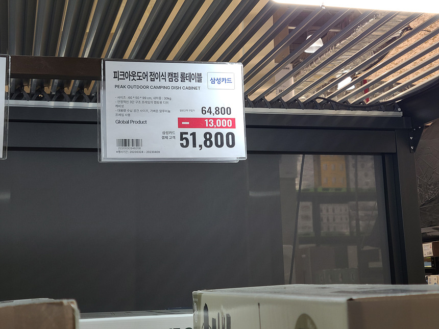 접이식 테이블 외에 폴딩 우드 선반도 있었습니다. 이런 선반이 있으면 우드톤으로 여러가지 올려놓기 좋을 제품입니다.