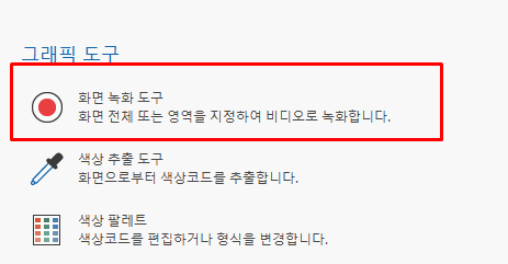 픽픽의 화면 녹화 기능은 활용성이 높습니다. 화면 녹화 도구를 눌러 화면 전체 또는 영역을 지정하여 녹화가 가능합니다.